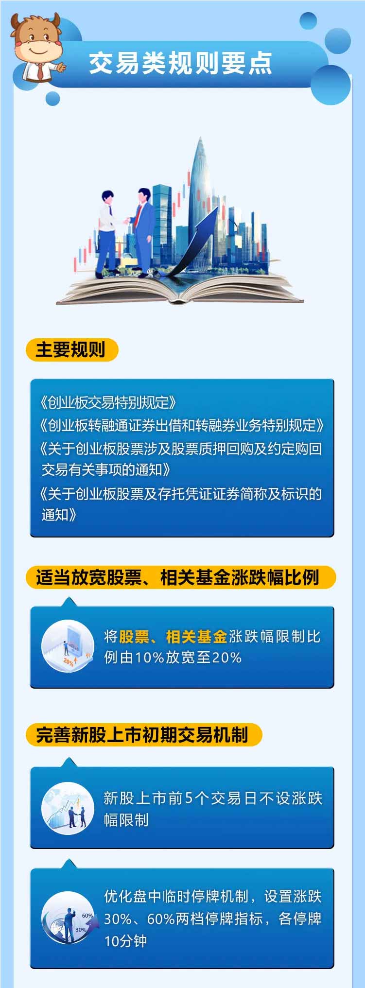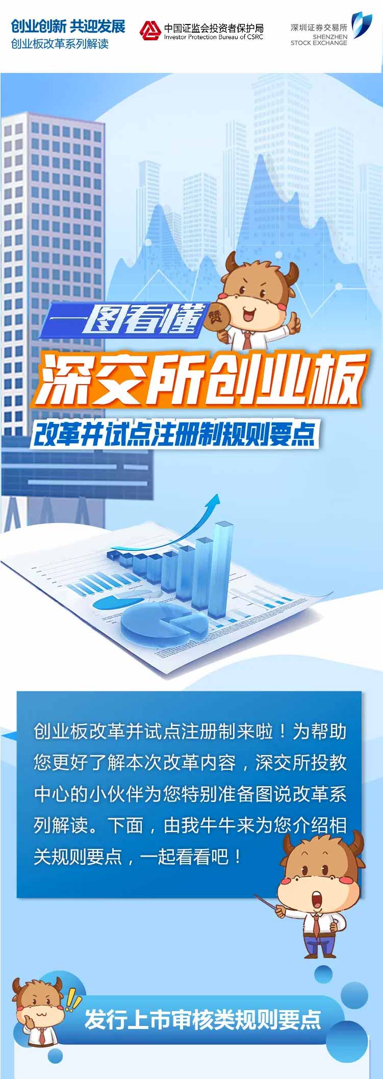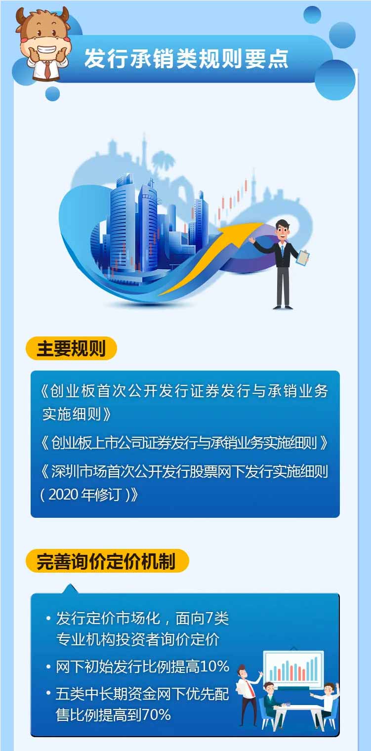 為幫助投資者加深對(duì)創(chuàng)業(yè)板改革并試點(diǎn)注冊(cè)制的認(rèn)識(shí)和理解,深交所投資者教育中心特別推出圖說改革系列解讀。本篇介紹上市審核類、發(fā)行承銷類、交易類、持續(xù)監(jiān)管類主要規(guī)則及要點(diǎn),一起來了解一下吧!