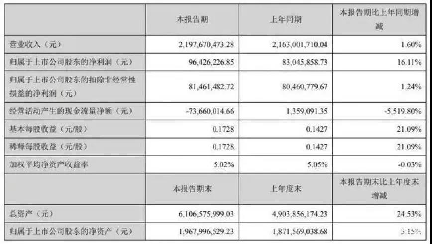 上半年實(shí)現(xiàn)凈利潤(rùn)0.96億元 同比增長(zhǎng)16.11%
